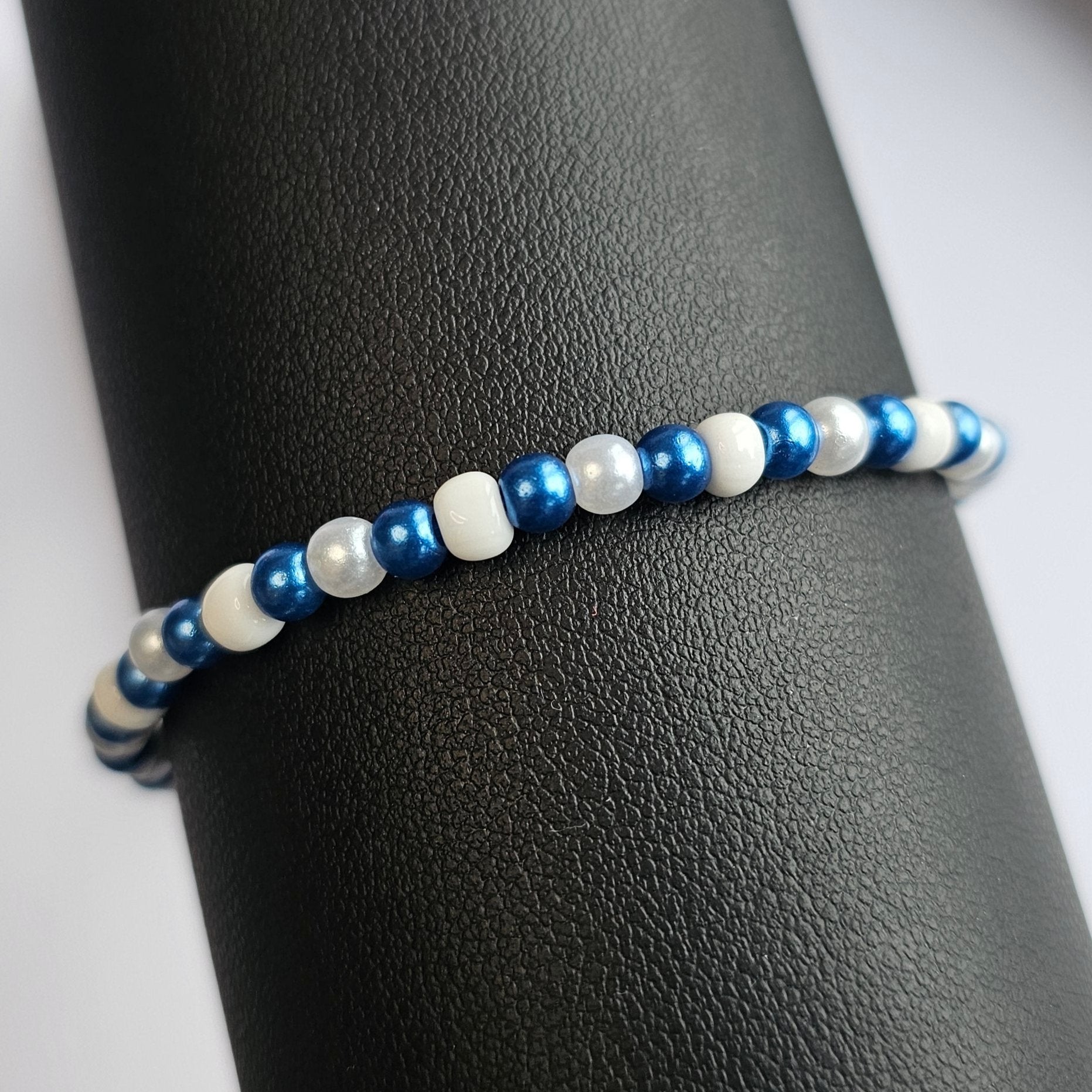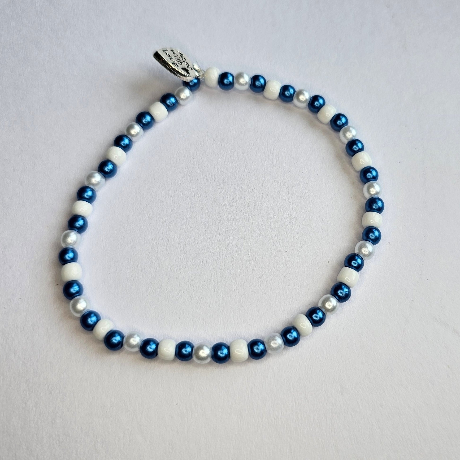 Håndlaget armbånd med elastisk strikk for å sikre god passform. Armbåndet kan bestilles i str. xs - xl (15 cm-19 cm).