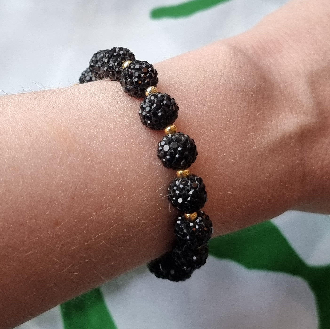 Håndlaget armbånd med elastisk strikk for å sikre god passform. Armbåndet kan bestilles i størrelse xs - xl (15 cm-19 cm).