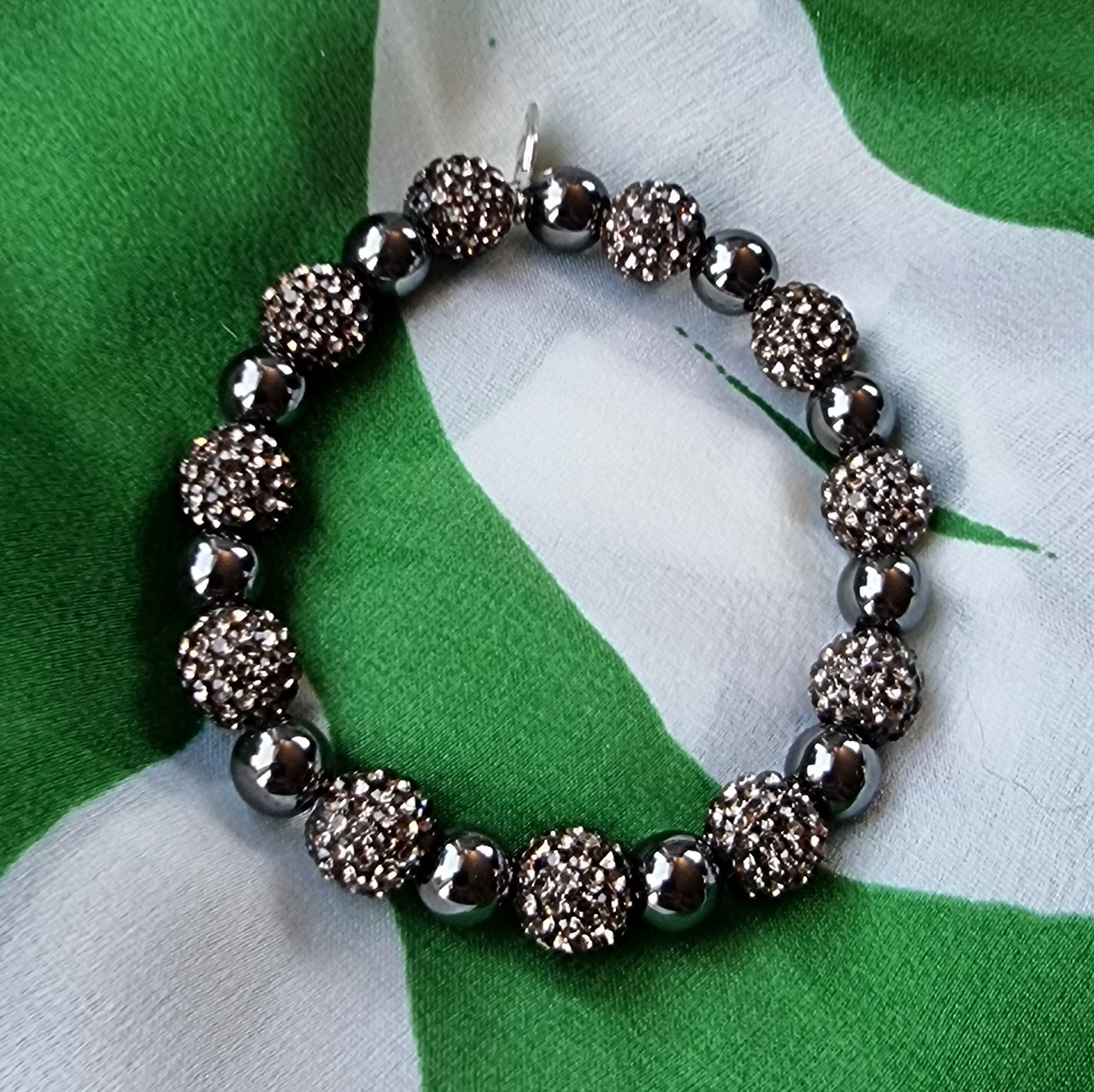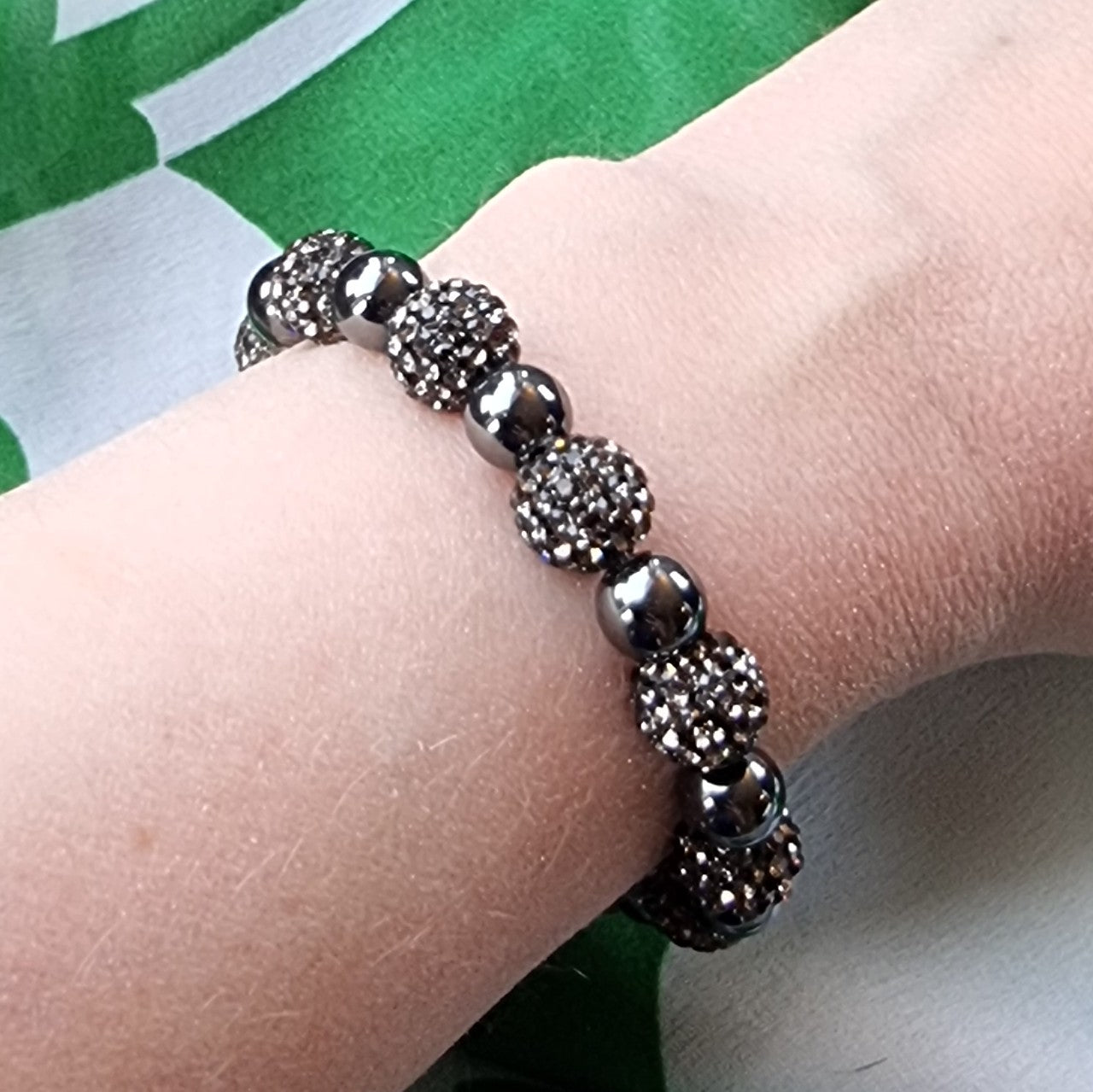Andrea armbånd - hematitt- og strassperler