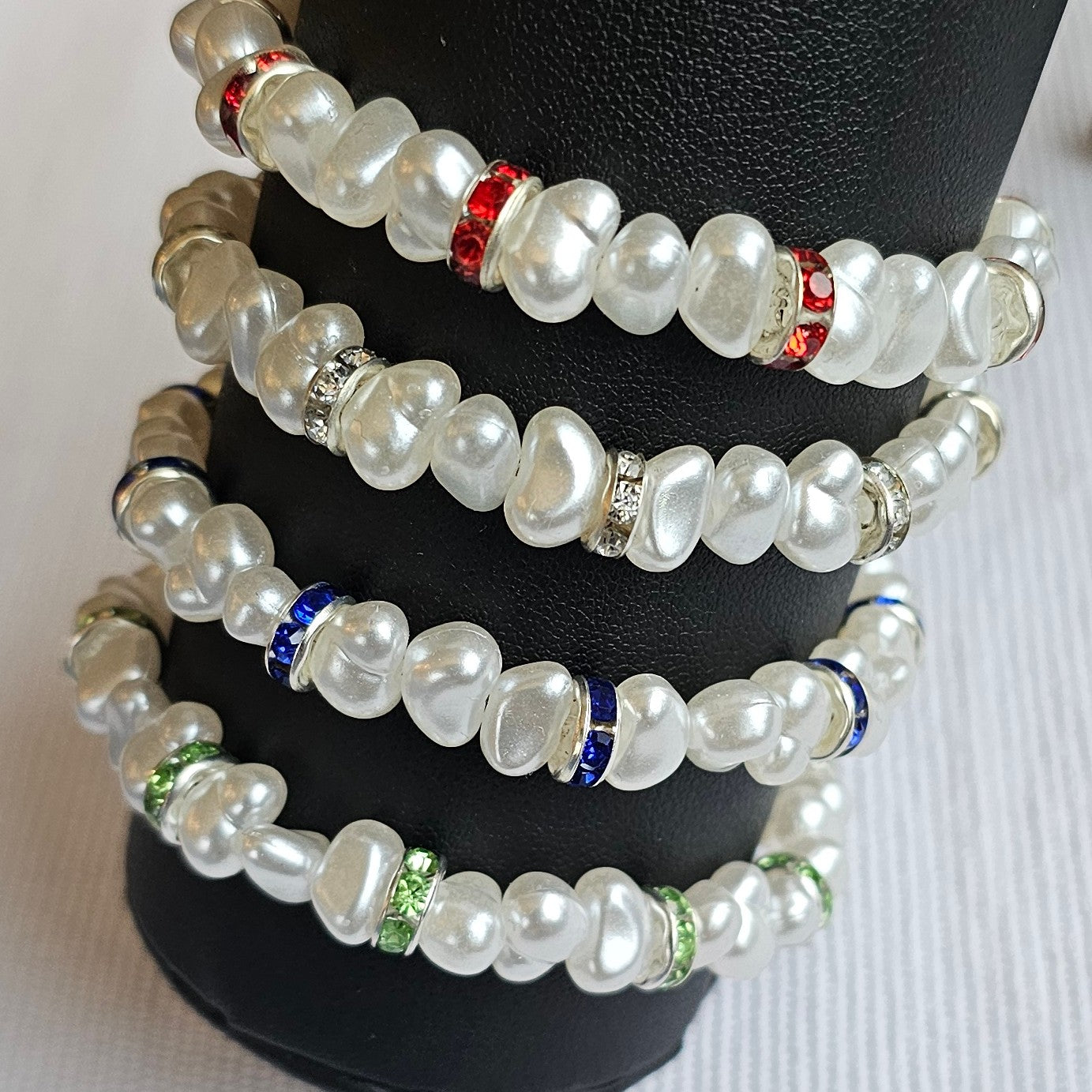 Håndlaget armbånd med elastisk strikk for å sikre god passform. Armbåndet kan bestilles i 4 ulike farger og i størrelse xs - xl (15 cm-19 cm).