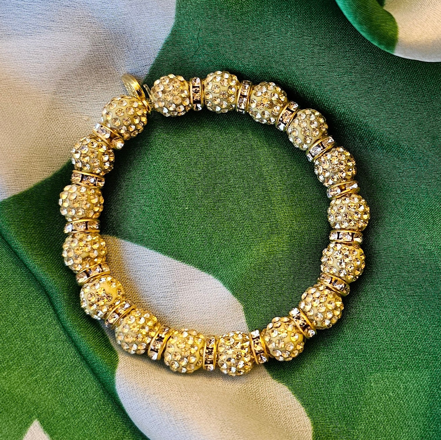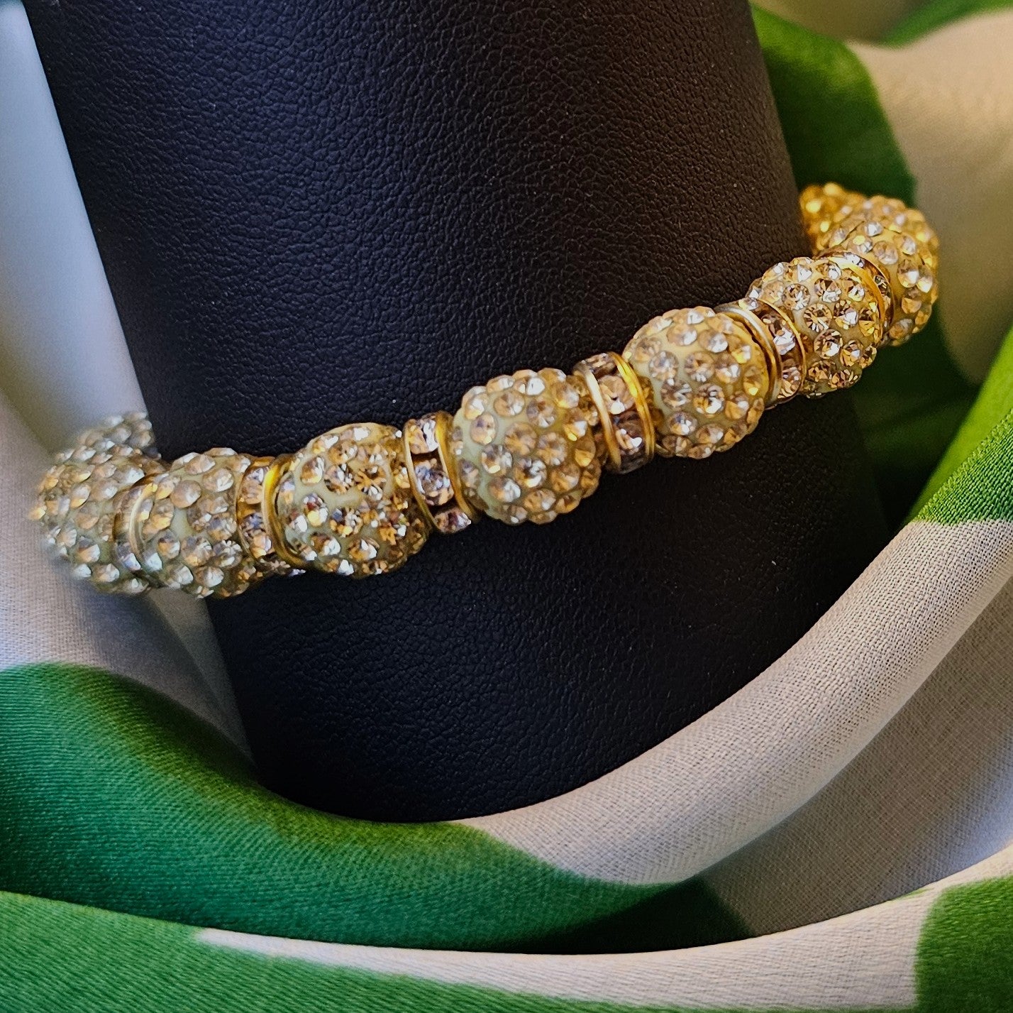 Håndlaget armbånd med elastisk strikk. Laget av akrylkrystal rhinestoneperler og rhinestoneperler. Armbåndet kan bestilles i str. xs - xl (15 cm-19 cm).
