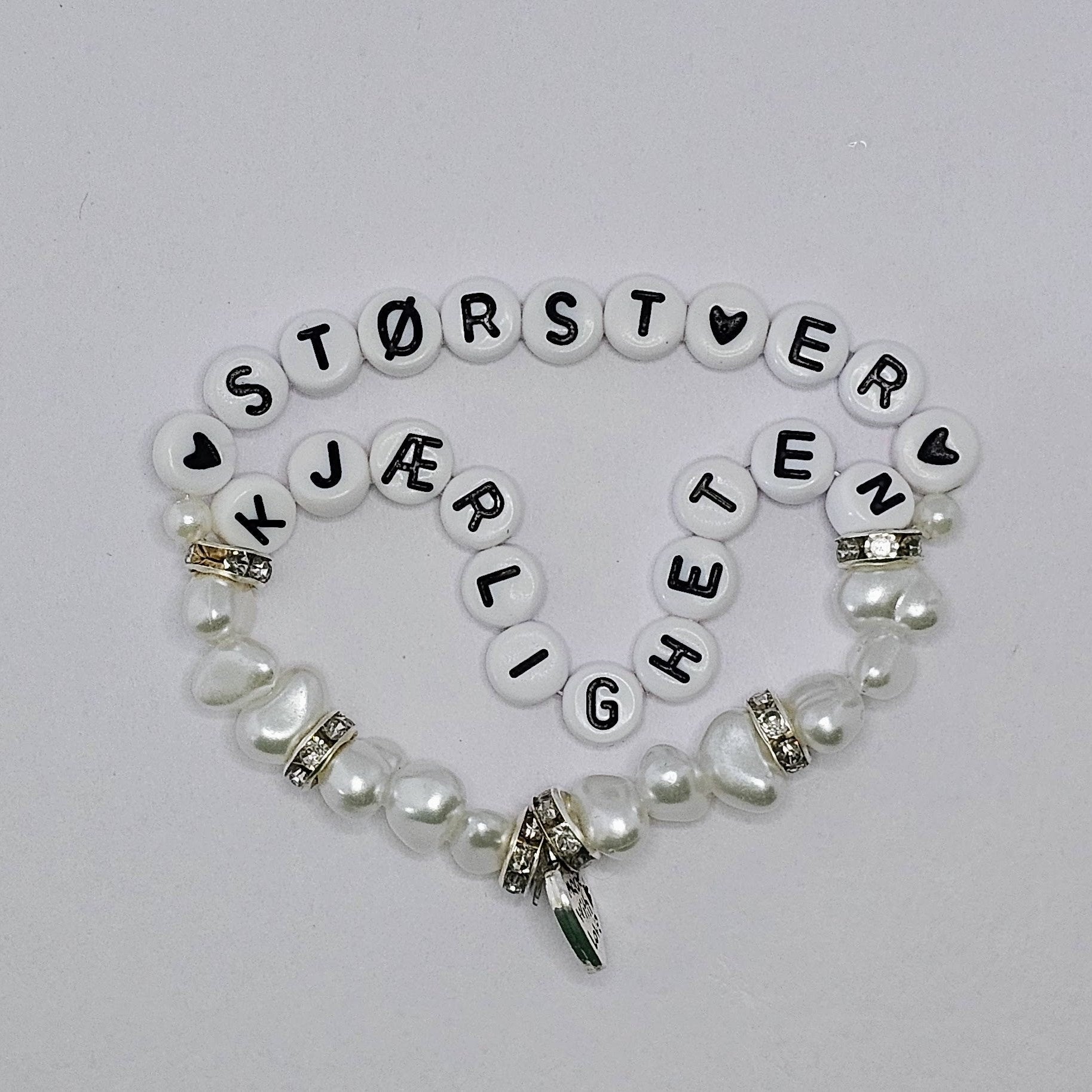 Håndlaget armbånd med elastisk strikk for å sikre god passform. Armbåndet kan bestilles i str. xs - xl (15 cm-19 cm).
